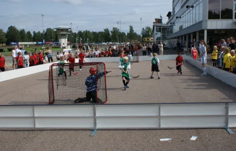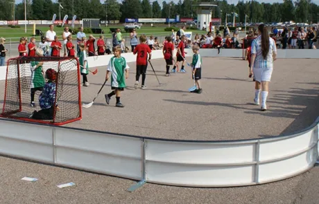 Snabb montering: Monteringsdetaljer ingår, och en rink med måtten 10 x 20 meter kan monteras av två personer på ca 4 timmar.