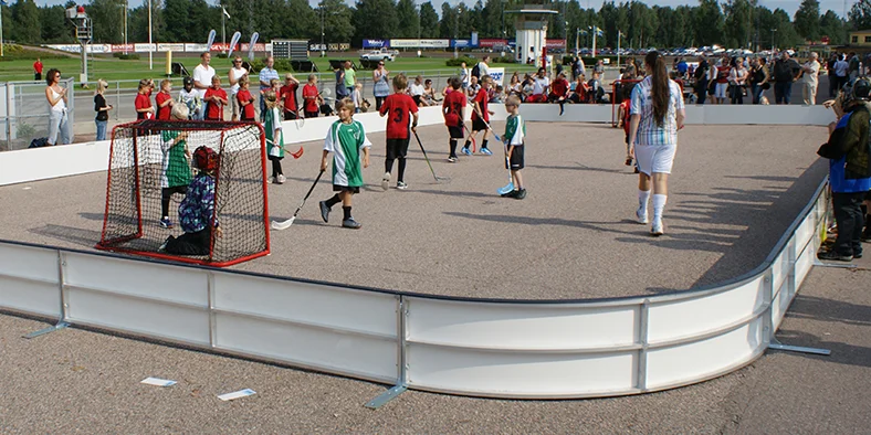 Hög hållbarhet: Tillverkad med en 30 x 50 mm aluminiumram med 3 mm gods och slitstark 8 mm HDPE-plast, som är anpassad för att klara påfrestningarna från hockeyspel. Detta gör rinken perfekt för ishockey under vintern samtidigt som den säkerställer lång livslängd och minimalt underhåll.